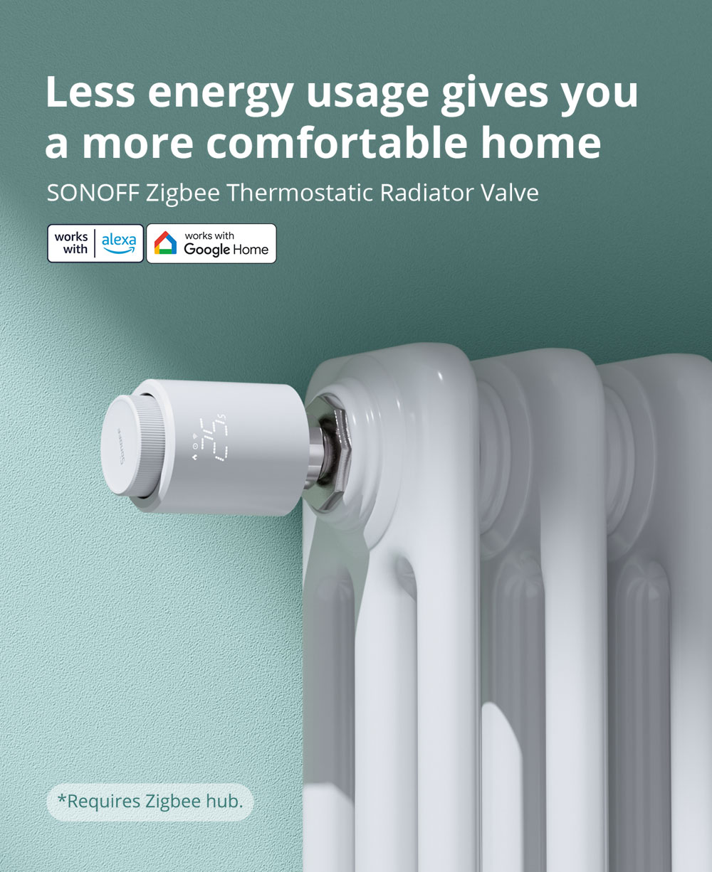 - Remarque : la vanne thermostatique de radiateur doit être utilisée avec le hub Zigbee. Veuillez noter que la vanne thermostatique de radiateur SONOFF Zigbee n'est pas compatible avec SONOFF ZBbridge.